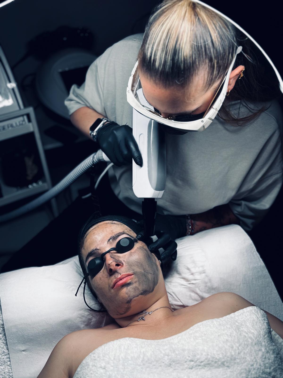 Tratamiento láser de rejuvenecimiento no invasivo e indoloro que se basa en la aplicación sobre la piel de una máscara de carbon vegetal activado.