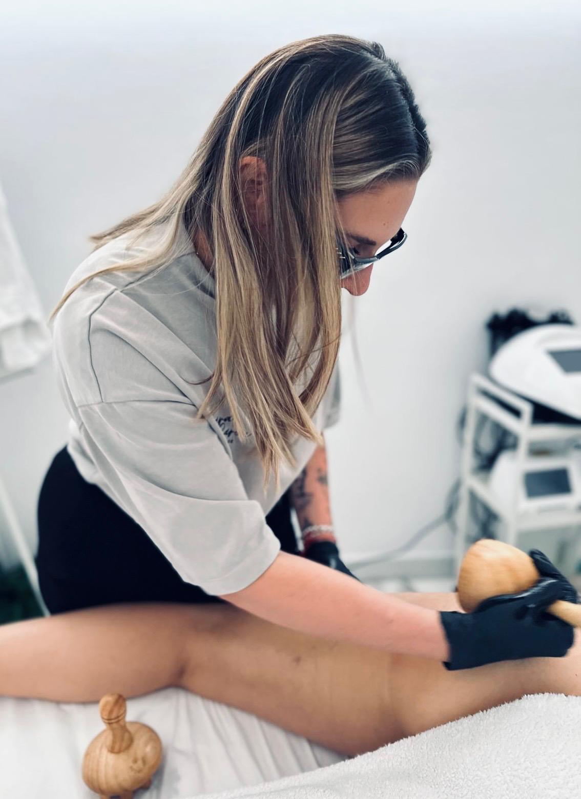 En este tratamiento mezclamos el poder drenante y moldeador de la maderoterapia con una de nuestras máquinas corporales con las que vamos a eliminar o reducir celulitis y grasa localizada.