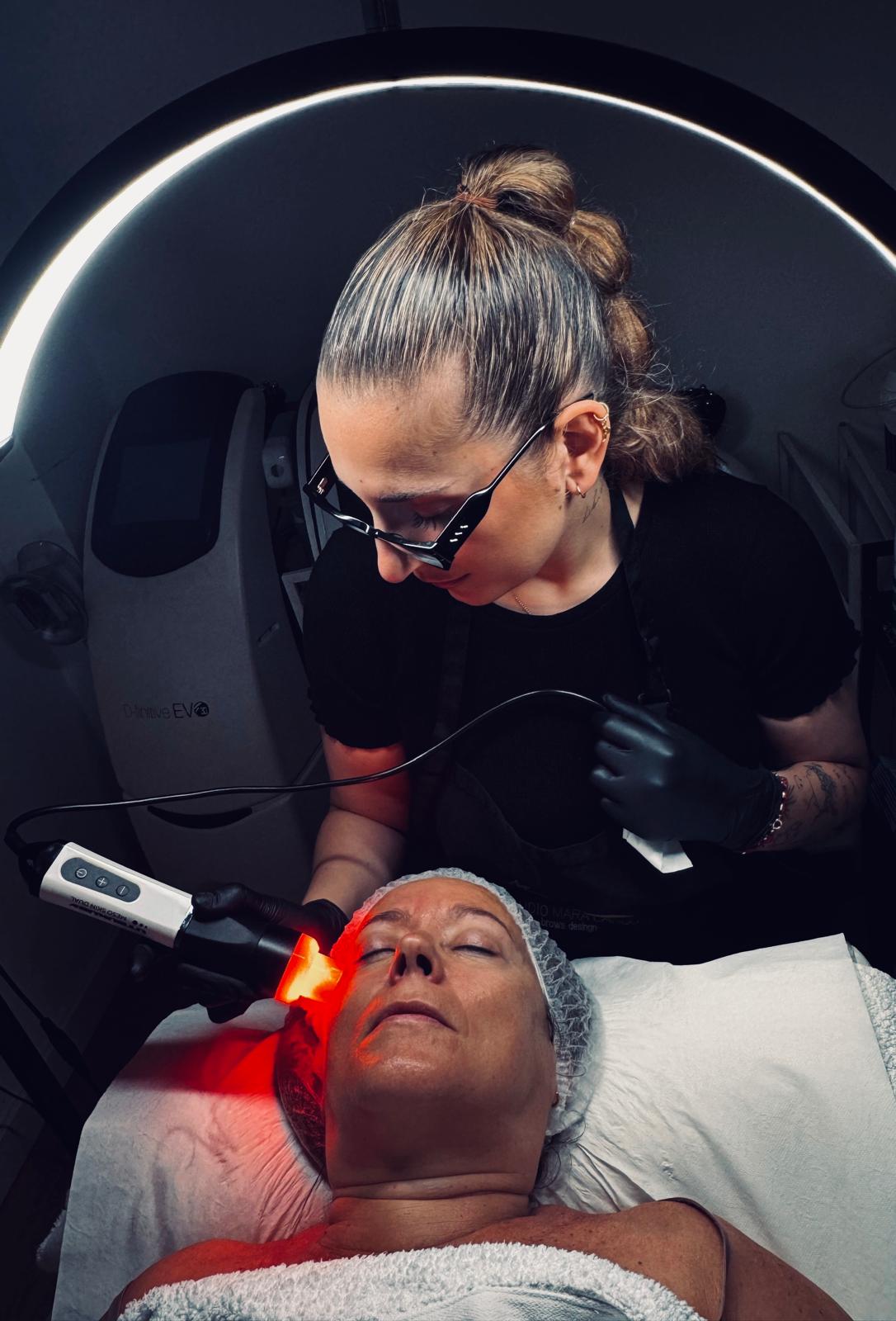 Consiste en aplicar ondas electromagnéticas que llegan a las capas profundas de la piel, cuyo objetivo es mejorar la circulación sanguínea y potenciar la producción natural de colágeno a través de la activación de fibroblastos.